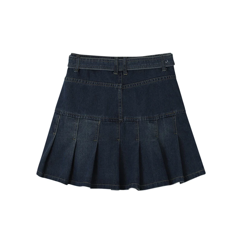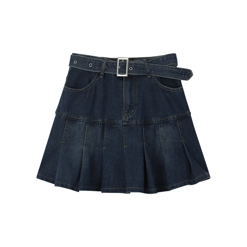 Y2k High Waist Denim Mini Pleated Skirts With Belt Women 2021 Summer Fashion Retro A Line Skirt Korean Ins Female Casual Skirts